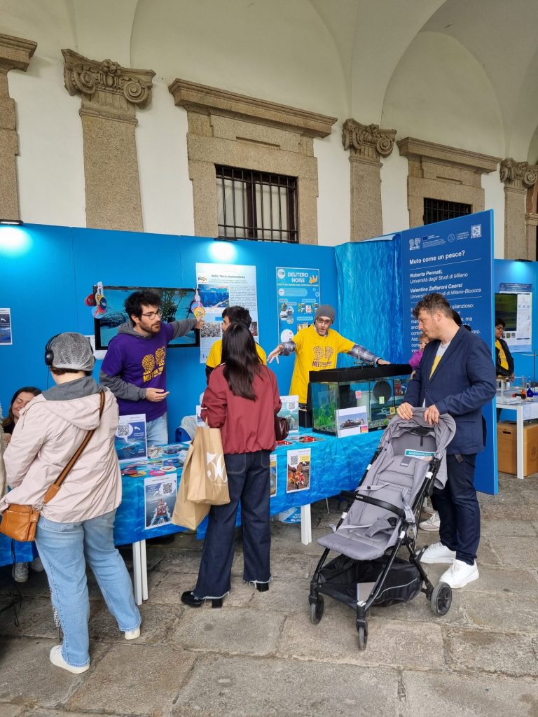 Nel padiglione “Proteggere oceani, mari, laghi e fiumi”, nel nostro stand dal titolo “Muto come un pesce” abbiamo avvicinato il pubblico al problema dell’inquinamento acustico nei mari.